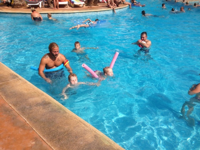 Unsere Emily konnte in der Woche das Schwimmen lernen, dort hat Florian ihr Schwimmunterricht gegeben. Nun muss sie tüchtig üben, damit sie das Seepferdchen machen kann. Angst vor dem Wasser hat sie nicht, unzählige A....bomben wurden im tiefen Wasser gekonnt platziert und gefeiertJ. Abends gab es täglich Kinderdisco, bei der die Kinder ordentlich abgetanzt und sich ausgetobt haben. Allerdings müde waren sie danach nie, komisch. Also war Emi auch bei der Spätvorstellung noch munter unterwegs. So haben wir eine tolle Piratentanzshow gesehen, einen gruseligen Vampirabend erlebt und bei einer lustigen Comedy Show herzlich und viel gelacht. Naja, und da war sie vorbei, unsere Woche, es ging wieder heim mit vielen vielen Eindrücken und dem Wunsch, irgendwann mal wiederzukommen. Emily hat Freundschaft mit einem Animateur, Dustin, geschlossen, der ganz begeistert von unserem blonden Wirbelwind war. Nun werden wir uns an kalten Tagen erinnern an einen sonnenverwöhnten Urlaub, in dem wir nichts vermisst haben.